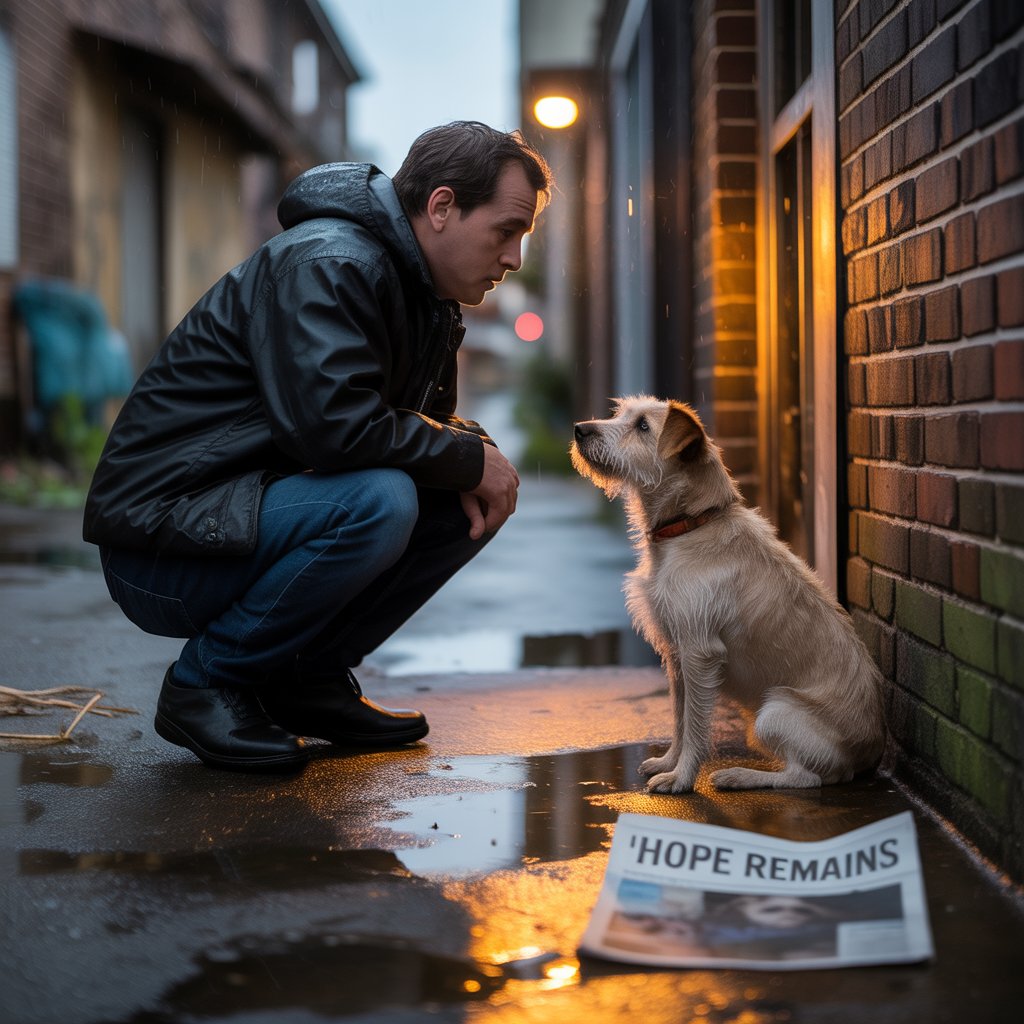 He took a shortcut down a secluded alleyway, a narrow path he’d walked a hundred times before, his mind preoccupied with the quiet loneliness that had settled into his life. But on this day, a faint flicker of movement in the shadows caught his eye. He stopped. Huddled against the cold brick wall was a dog, a pile of matted fur and trembling bones, so weak it could barely lift its head. The animal’s eyes, cloudy with sickness and despair, held the look of a creature that had completely given up.